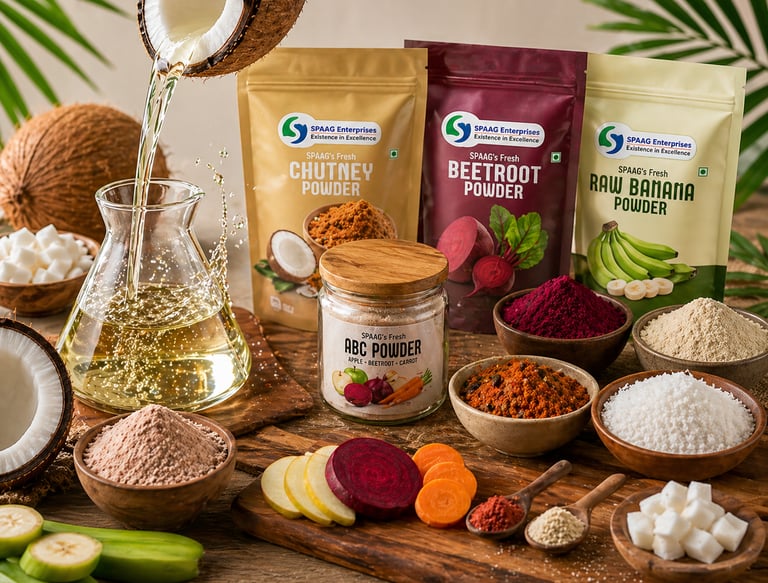 Building on this foundation, we have expanded our portfolio to include nutrient-rich, plant-based products such as raw banana powder, beetroot powder, and ABC powder — carefully processed to retain their natural goodness, flavor, and health benefits.